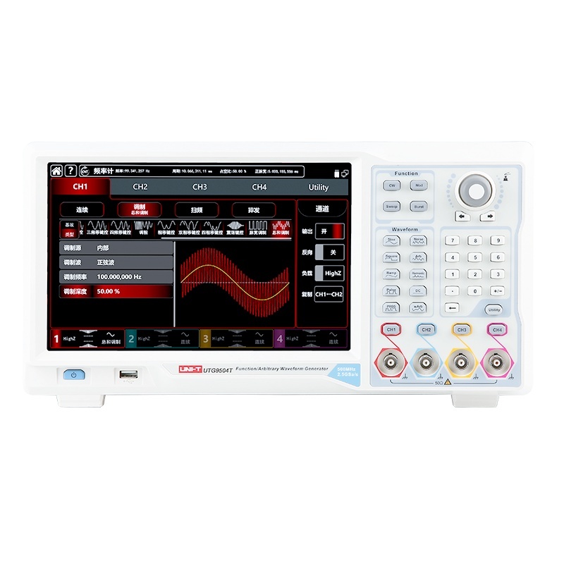 UTG9604T函数/任意波形发生器,使用DDS直接数字频率合成技术,可生成高精度、稳定、纯净、低失真的信号,还能提供高频率且具有快速上升沿和下降沿的方波。是一款高性能、多功能的四通道函数/任意波形发生器。便捷的触控操作界面、优越的技术指标及人性化的图形显示风格,可帮助您更快的完成工作任务,提高工作效率,是满足您目前及未来测试需求的多用途设备。