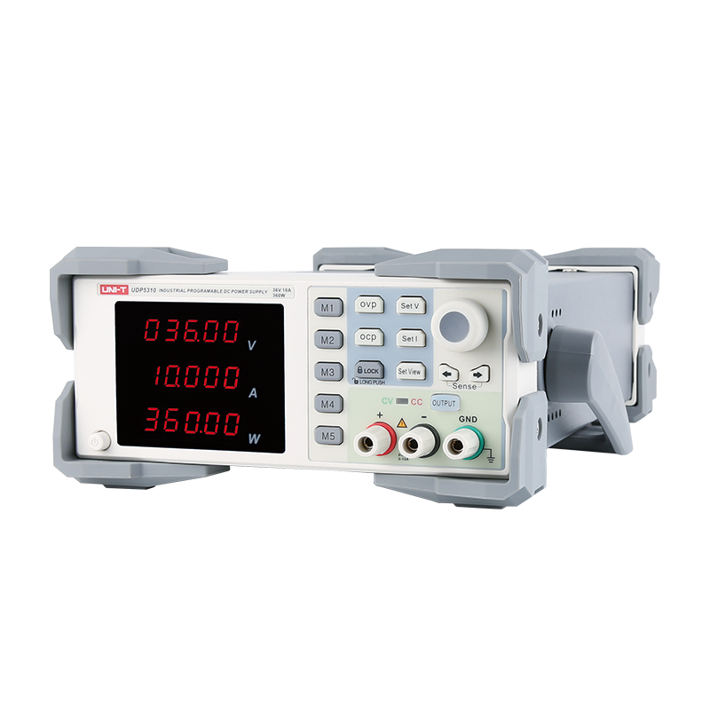 UDP5300系列单通道可编程线性直流电源拥有数码屏显示,测量范围广泛,具备1mV/0.1mA高精度分辨率,电源兼具桌上型和系统型的特性,可任意搭配其他仪器,集成特殊功能的测试系统,完成不同场合下的测量需求,具有高性价比优势,给用户的使用带来极大的方便,是普通可编程电源的换代产品。